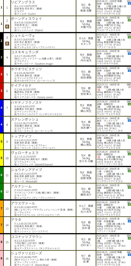 ※18頭登録/フルゲート16頭