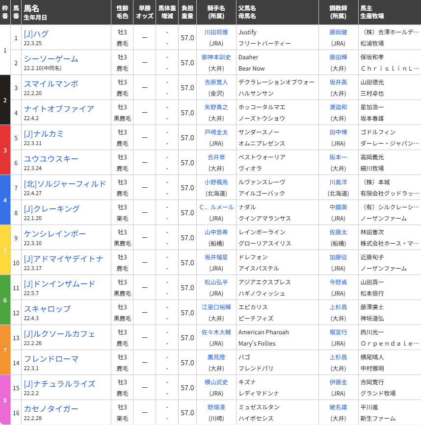 ジャパンダートクラシック枠順