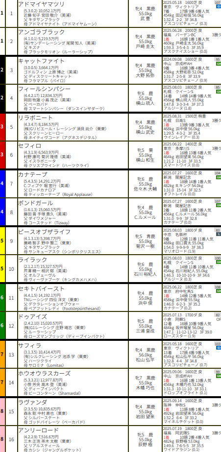 ⇒ 10/13 東京11R出走