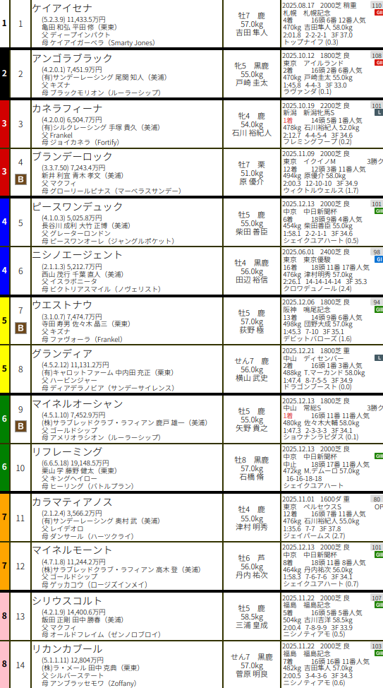 2026年の登録馬は16頭